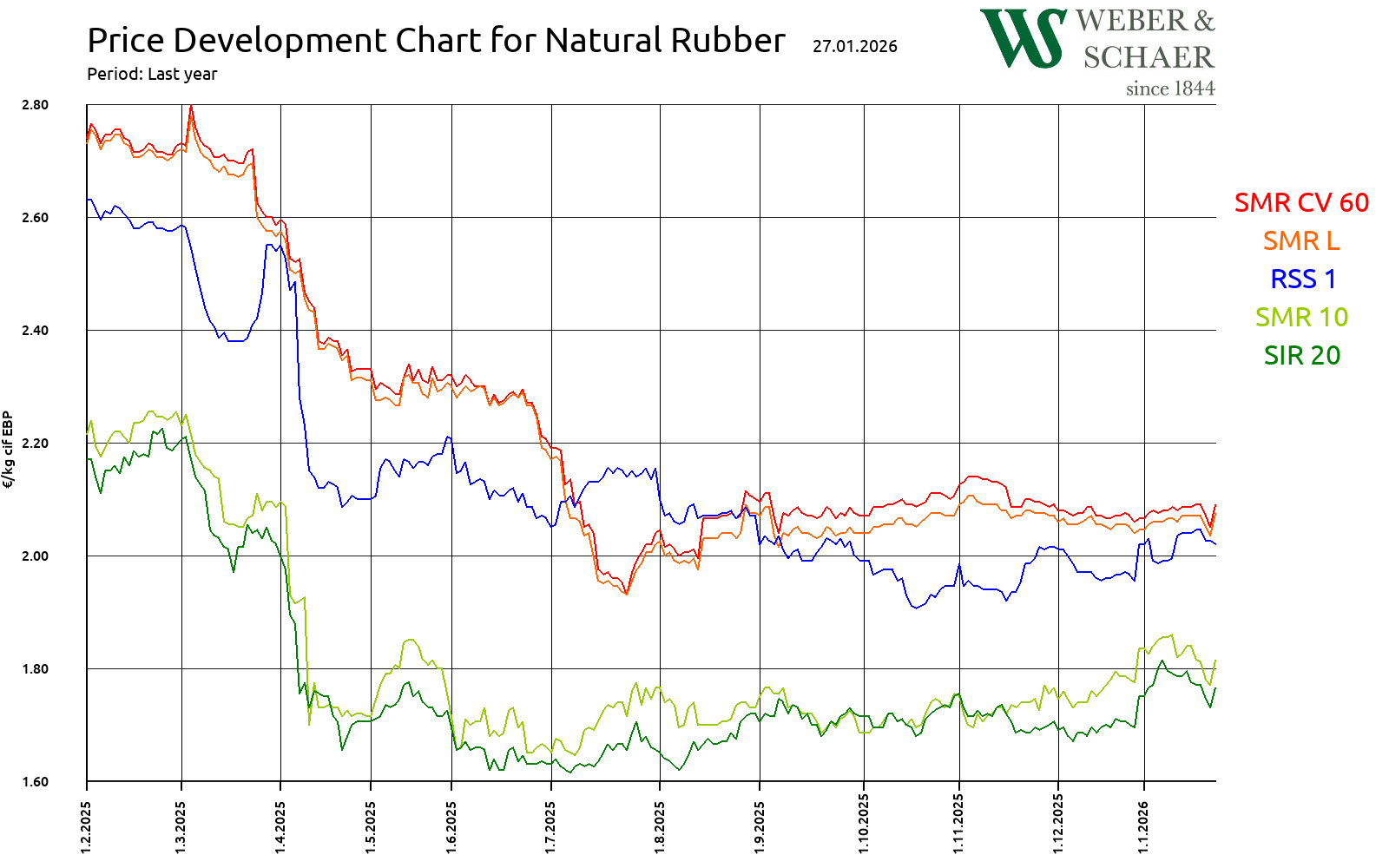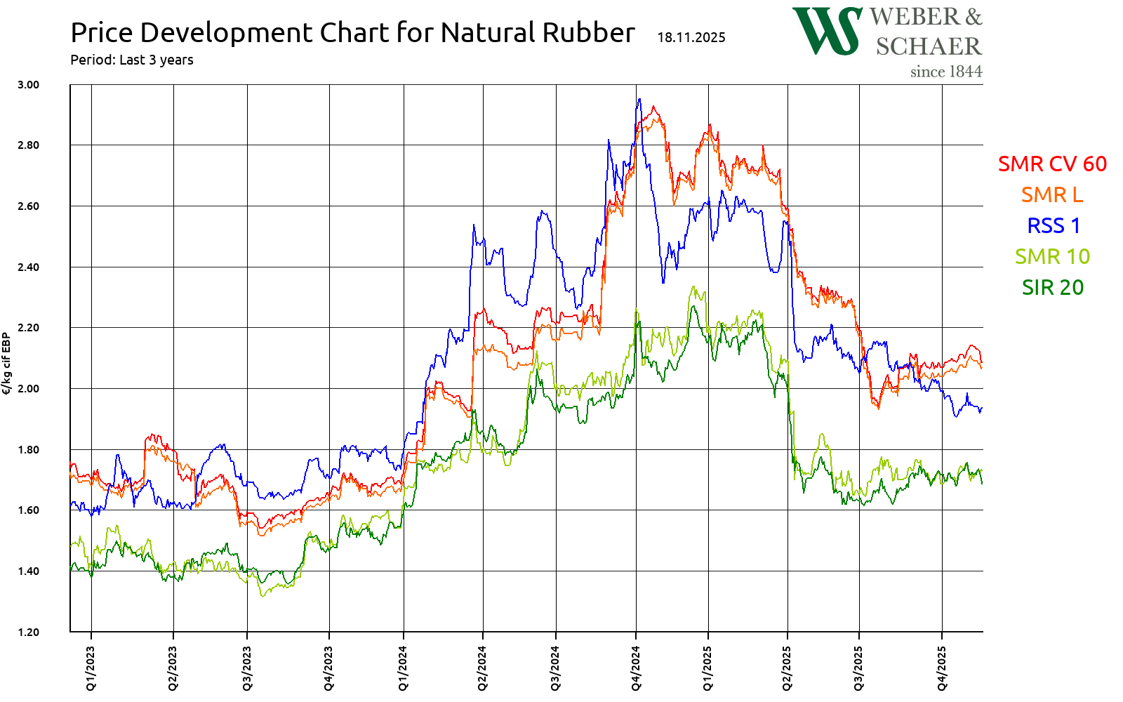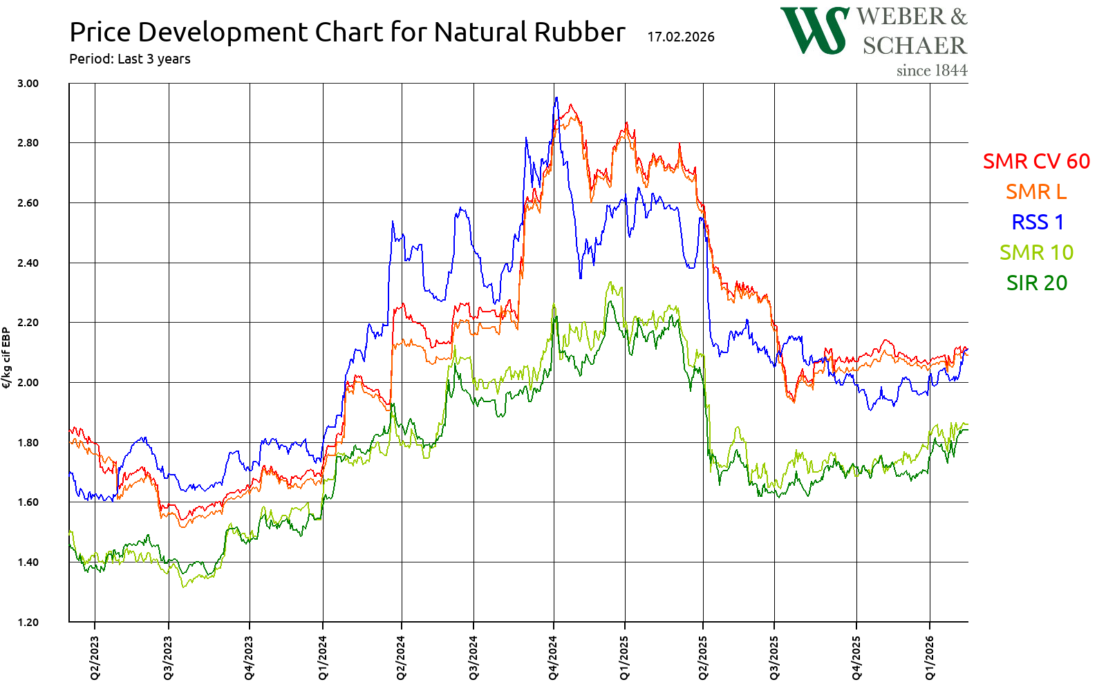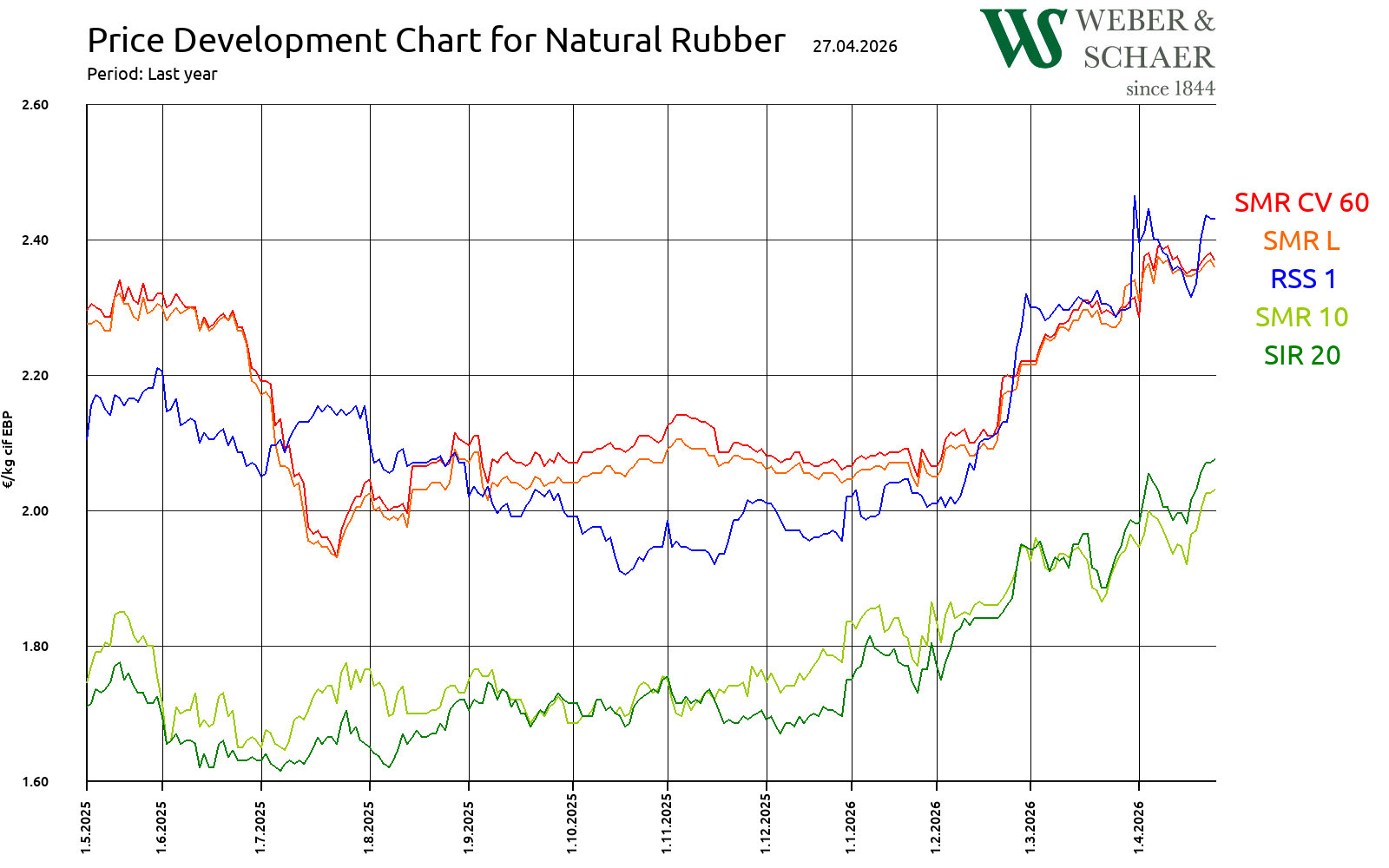 Price Development ChartFrom 2011Last 3 yearsLast 12 monthPDF DownloadThe published price chart is based on market data traced by Weber & Schaer.Prices are given in €/kg cif European Base Port.