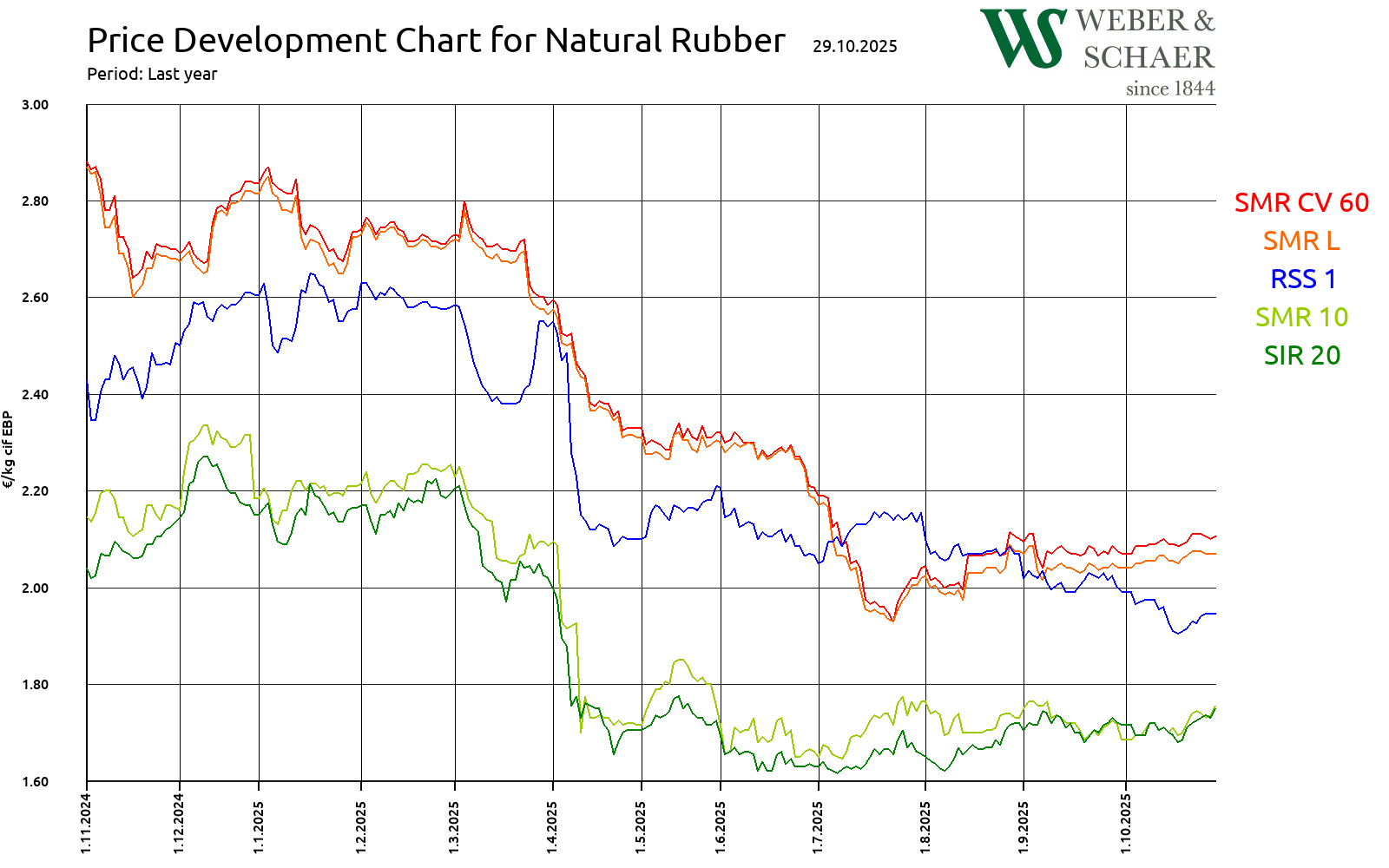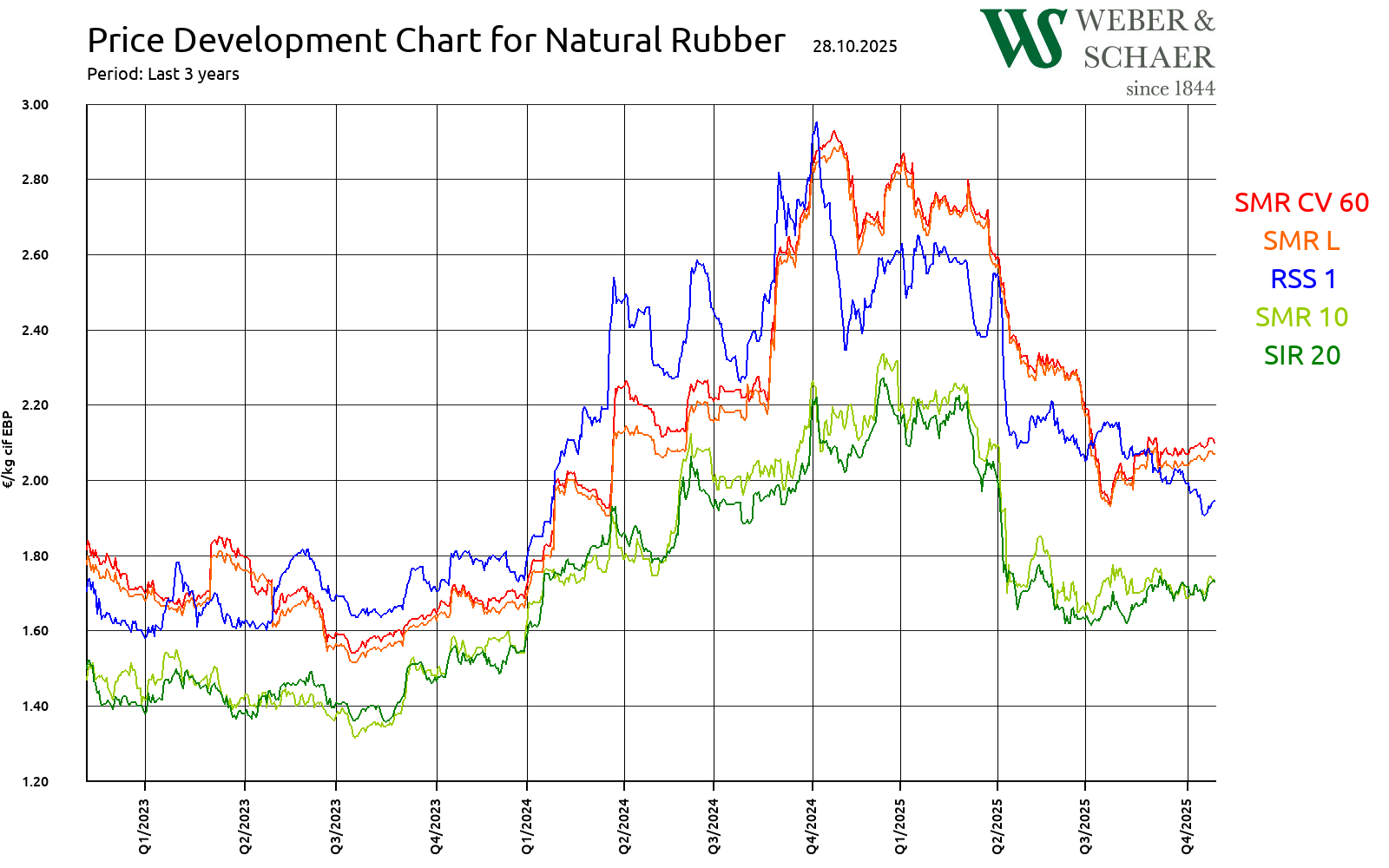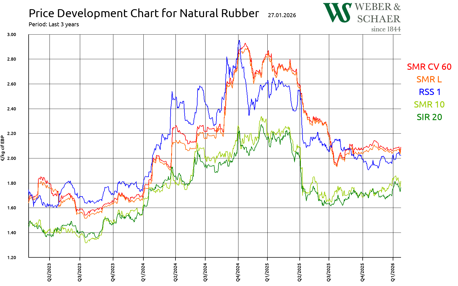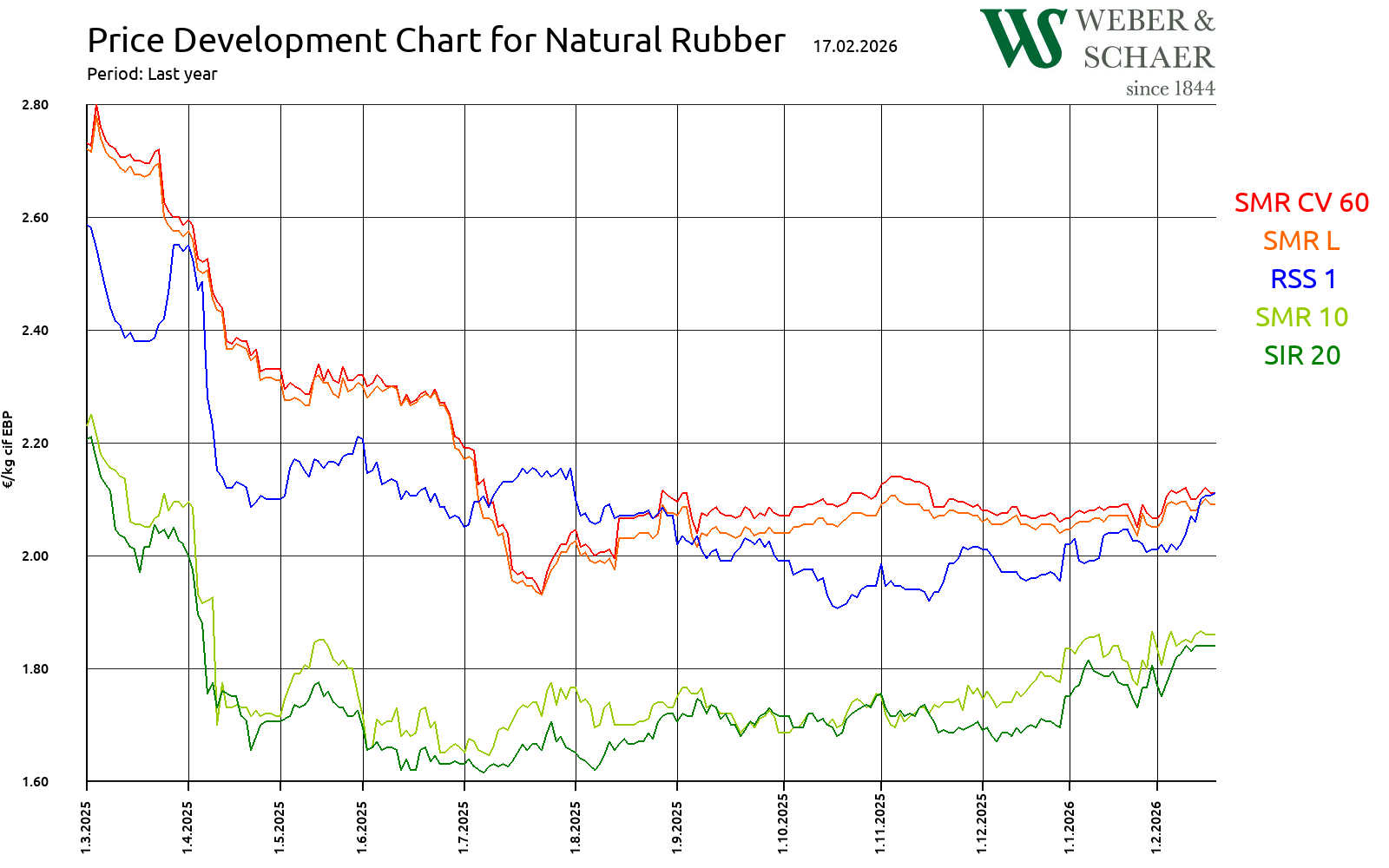 Price Development ChartFrom 2011Last 3 yearsLast 12 monthPDF DownloadThe published price chart is based on market data traced by Weber & Schaer.Prices are given in €/kg cif European Base Port.